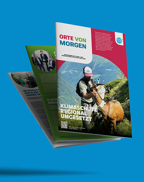 Im Sommer 2025 wurde das Magazinprojekt im Zuge einer Ausschreibung vergeben. Gemeinsam mit communication matters haben wir den Zuschlag im Bereich Corporate Publishing erhalten. Unser ganzheitliches Designkonzept und die starken Inhalte von communication matters überzeugten die Bewertungskommission und brachten uns auf Platz 1. Während communication matters für Inhalte und Redaktion verantwortlich zeichnet, übernehmen wir die grafische Umsetzung, das Editorial Design sowie die gesamte Projekt- und Produktionsabwicklung. Von Struktur, Typografie und Bildsprache bis hin zum Projektmanagement kommt alles aus einer Hand. Die Zusammenarbeit mit communication matters für den Klima- & Energiefonds ist dabei durchwegs effizient, partnerschaftlich und sehr angenehm. Ziel der Neugestaltung war es, das bestehende Design des Vorbuilder- Magazins behutsam weiterzuentwickeln. Das Ergebnis ist ein zeitgemäßer, klar strukturierter Auftritt – vertraut im Charakter, modern in der Ausführung. Der Vorbuilder erscheint zweimal pro Jahr. Das erste Magazin im neuen Design erschien im Jänner 2026. Jede Ausgabe enthält einen wechselnden Beileger – zum Auftakt „Orte von Morgen.“.